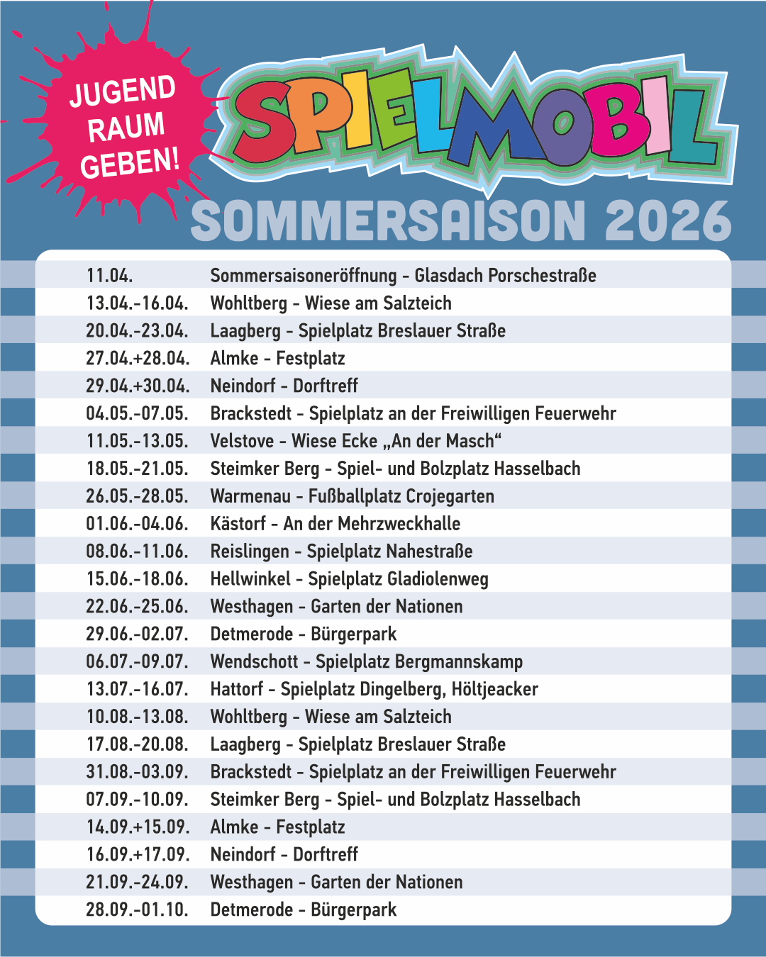 Das Spielmobil ist auch im Sommer 2026 wieder für euch unterwegs: